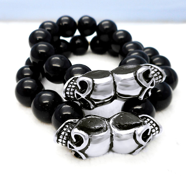| 产品名称:厂家直销天然黑玛瑙钛钢手链 情侣手链 |