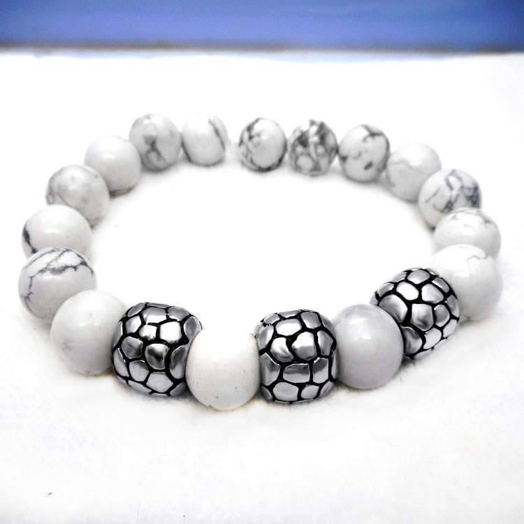 厂家直销天然白松石钛钢手链 男士手链